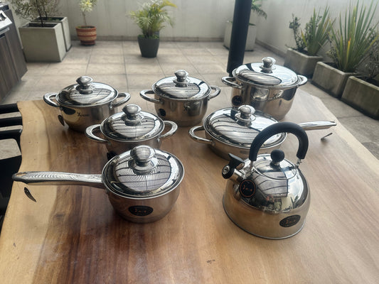 Ahorra $172.000Combo Home Premium Ollas Acero Inoxidable 13 Piezas + Tetera